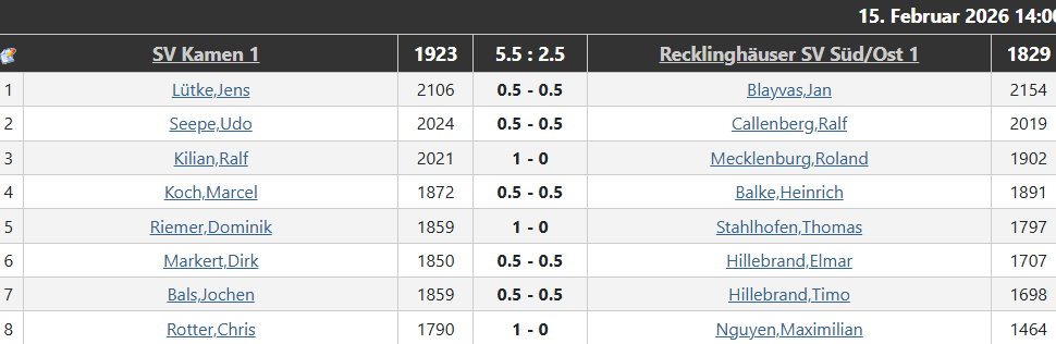 An den Brettern 1 und 6 spielten Aldo und Timo Remis.
