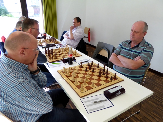 Eigentlich sollte der Kampf am Brett gerade beginnen, die Kontrahenten hatten ihre Püppchen nach der Eröffnung formiert, da unterlief Karl-Heinz ein folgenschwerer Fehler, der einen ganzen Turm kostete. Aufgrund des Spielstandes kämpfte er noch weiter, aber ein Turm ist einfach ein Turm.