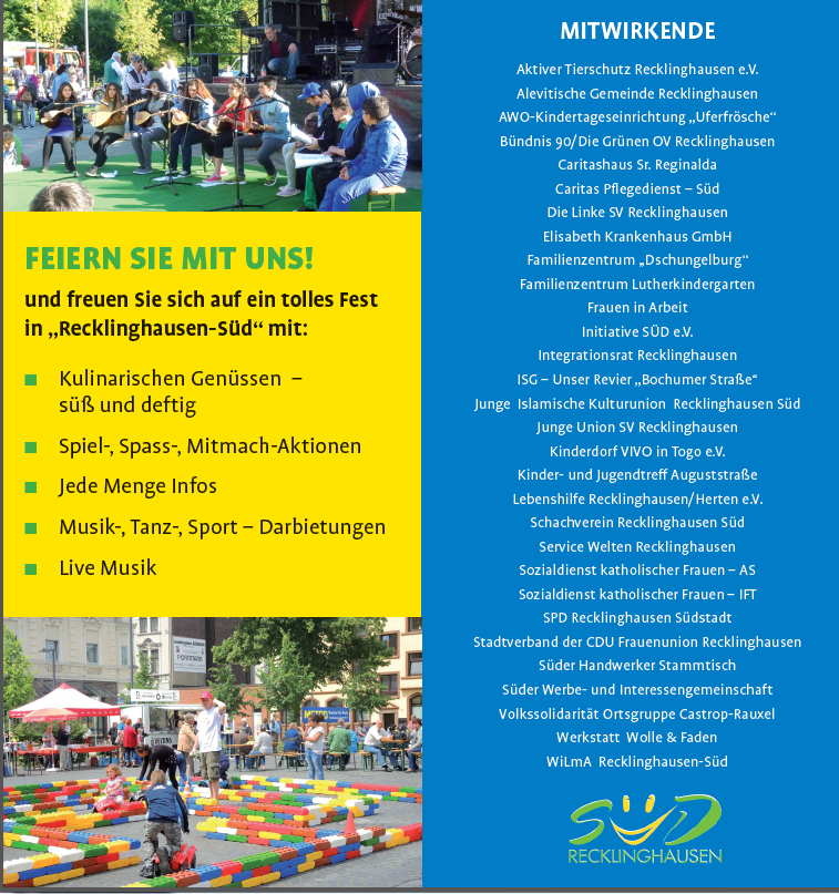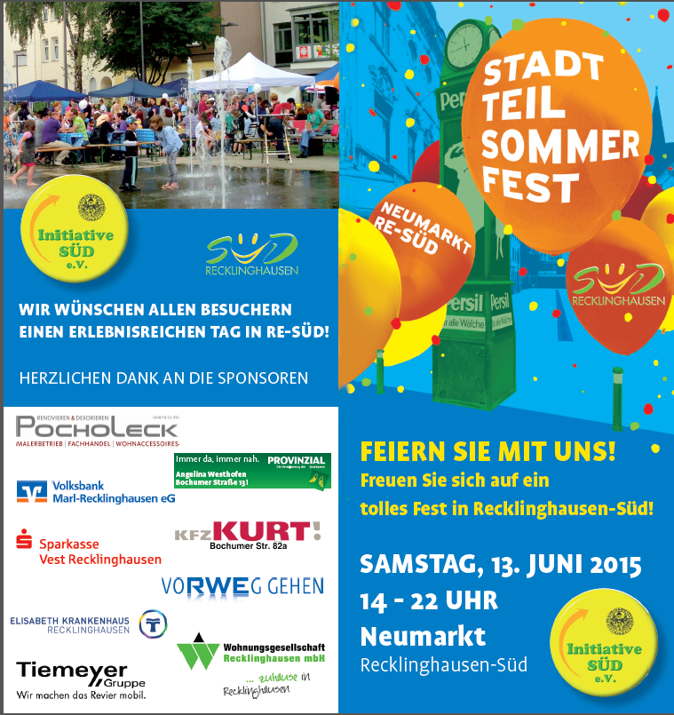 Endlich ist es wieder soweit….und wir sind mittendrin. Das Stadtteilsommerfest steht vor der Tür und die „Initiative Süd e.V.“ hat weder Kosten noch Mühen gescheut, um ein abwechslungsreiches Programm auf die Beine zu stellen.
