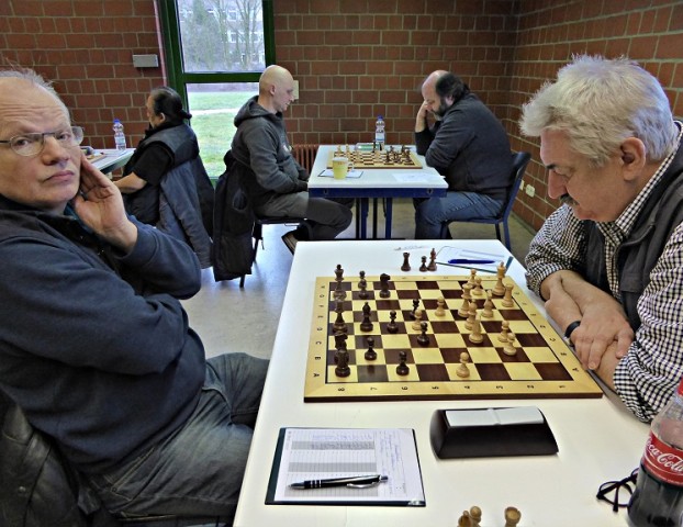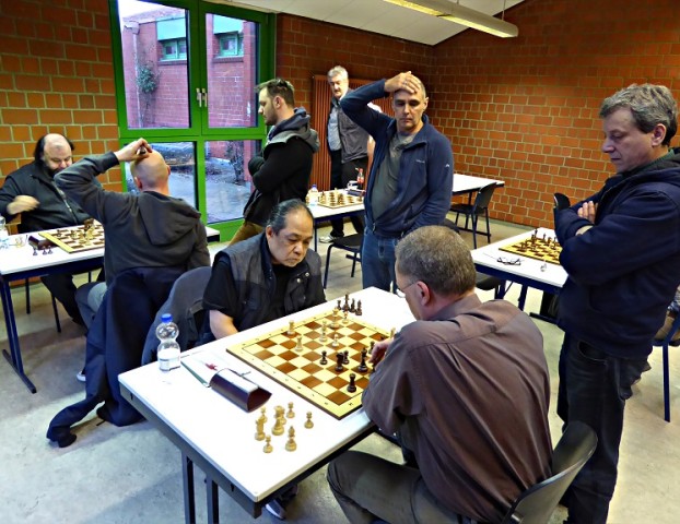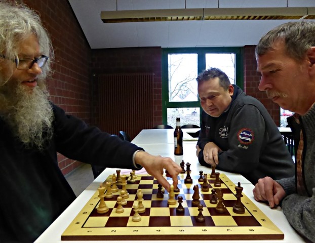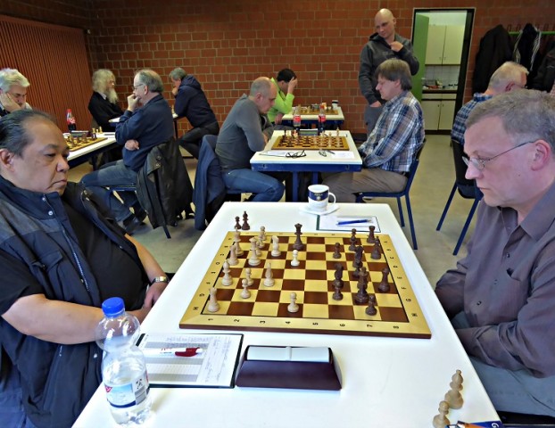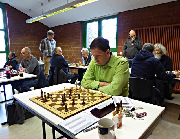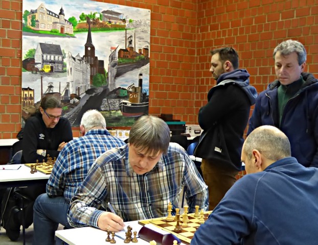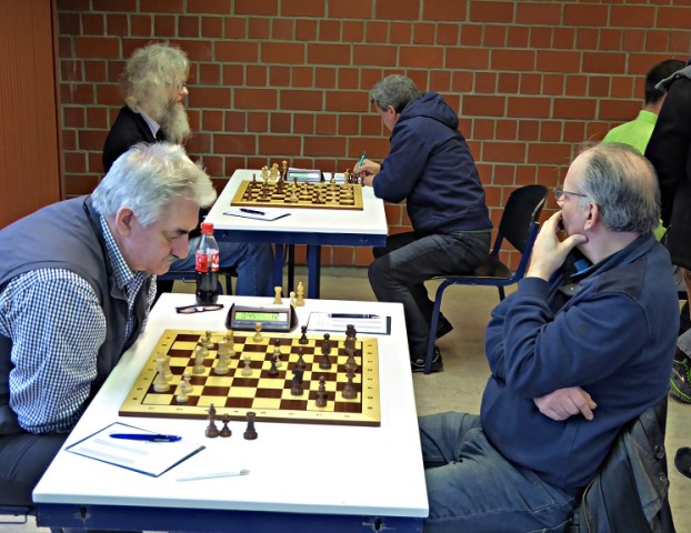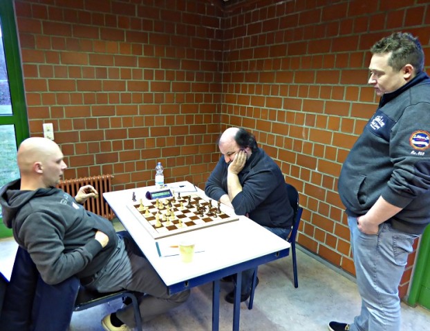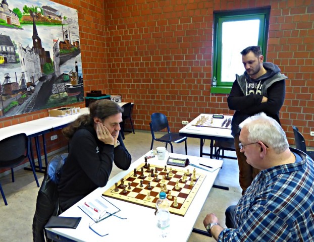 Das Sorgenkind war Roland Mecklenburg. Nach einer gelungenen Eröffnung verlor er den Faden und enorm viel Zeit, die dann in schwieriger Stellung kurz vor der Zeitkontrolle fehlte. Der Gegner tauschte völlig überflüssig die Damen, was dann den Weg zum Sieg ebnete.