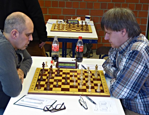 In einer relativ unklaren Stellung einigte sich Christian Becker mit seinem Gegner auf Remis. Nach der Partie hörte man mehrere Stimmen, die einen einzügigen Damenverlust von Christian gesehen haben wollten…trotzdem