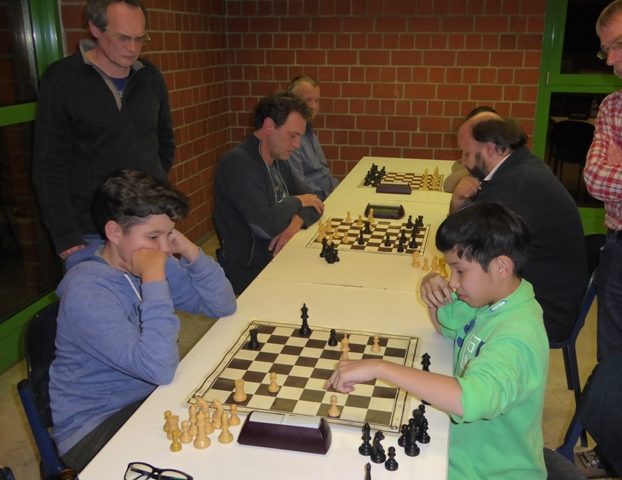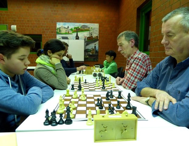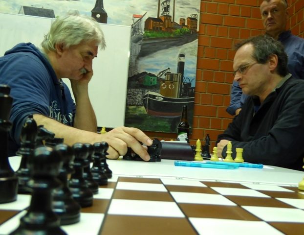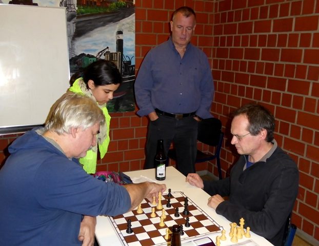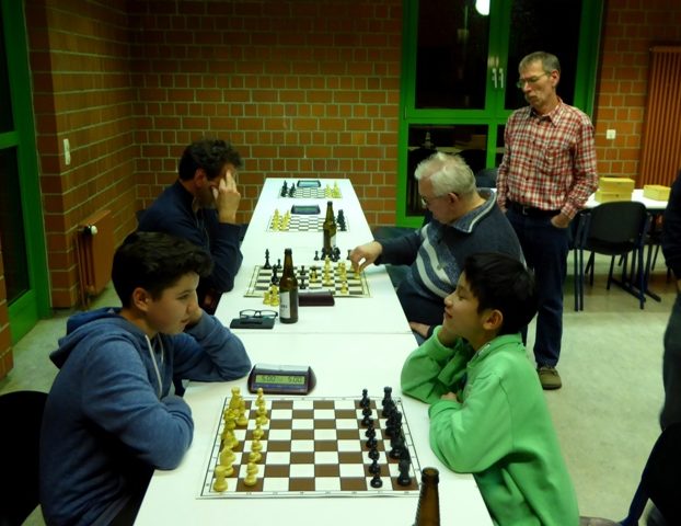 Selbst nach dem Turnier war die Stimmung – wie auf dem Foto erkennbar – sehr locker. Neun läppsche Runden können einen Süder einfach nicht erschüttern. Erfreulicherweise nahmen gleich drei unserer Nachwuchskräfte teil, die unter dem Motto „keine Angst vor den Grossen“ kräftig mitmischten. Vor allem Lena nahm sich den Spruch zu Herzen. Nachdem sie Charles noch von der Schüppe springen liess, setzte sie Werner sensationell matt.