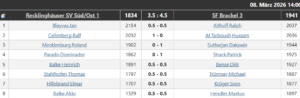 Manny verlor nach längerer Pause seine Partie an Brett 1, Werner an 3 musste sich ebenfalls geschlagen geben.