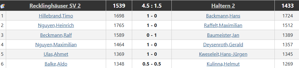 Als letztes kämpfte Maxi mit Mehrfigur um den Sieg. Nach Gegnerischem Gegenspiel konnte er sich dennoch durchsetzen und für den 4,5 zu 1,5 Heimsieg sorgen.