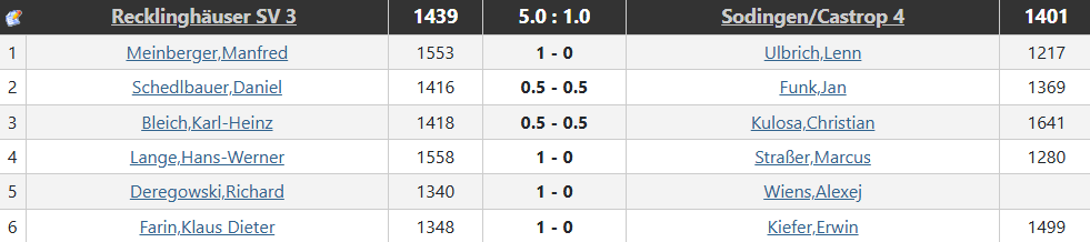Gegen Sodingen/Castrop 4 spielte Manny an Brett 1 und gewann seine Partie schön.