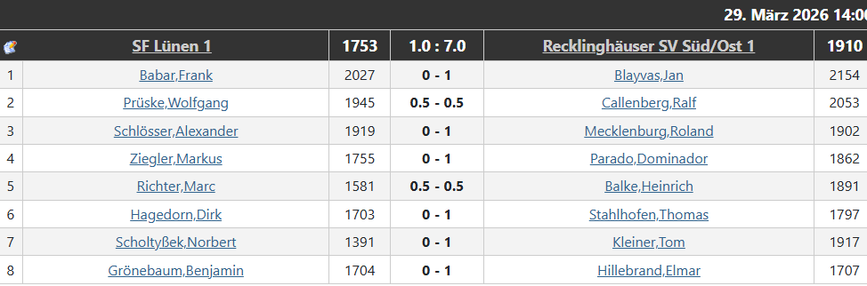 Verbandsliga 1, SF Lünen 1 gegen RSV 1