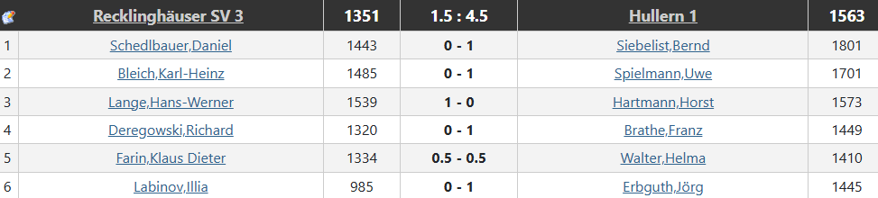 Ersatzgeschwächt musste Illia an Brett 6 aushelfen, welcher die Partie als erstes aufgeben musste.