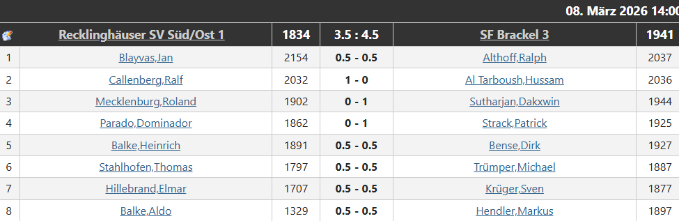 An den Brettern 1 und 6 spielten Aldo und Timo Remis.